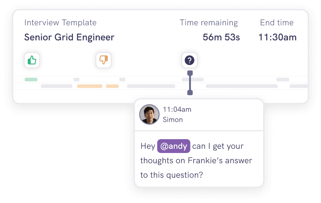 Live prompts, probing guidance, and clear scoring rubrics help engineers and site leaders run effective interviews both online and on-site.